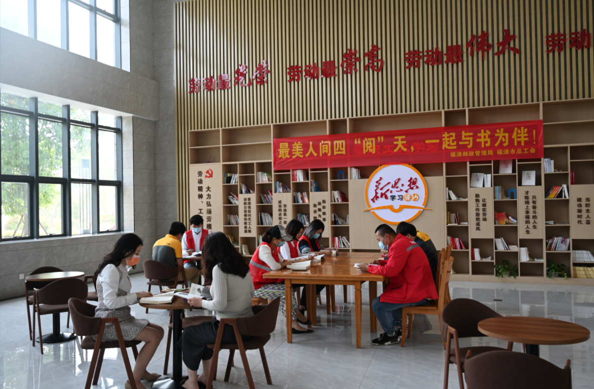 福清市总工会组织新就业形态劳动者读书。在福清“职工大学习”新思想学习驿站,福清市总工会联合邮政管理局组织新就业形态劳动者开展读书日活动。10余名快递从业人员在工会志愿者引导下,走到书架前,选择自己想要看的书籍。“今天难得休息,很久没阅读了,周围都是翻书的声音,不知不觉就沉浸到书里去了,这是一次很不错的阅读体验,以后有机会我还会再来。”快递小哥谢文强说。