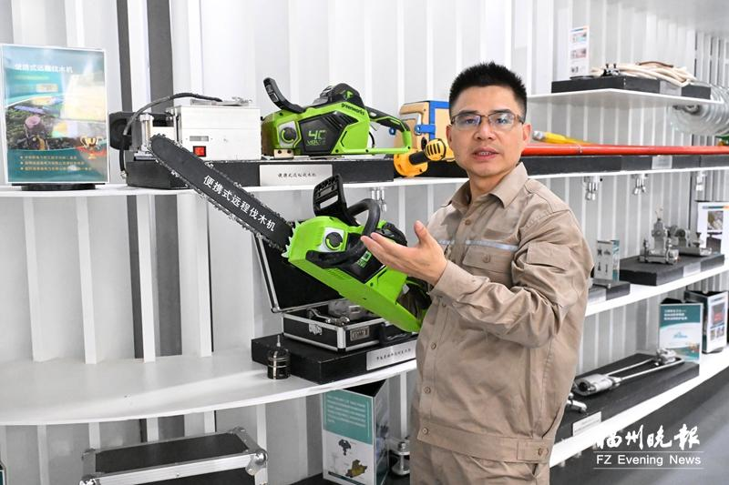 郑孝干还现场演示了便携式远程伐木机的工作过程。“我们将旋转台固定在树上,把锯子固定在旋转台上,开机之后人后退,用手机控制旋转台切割树木。手机上有画面,可以监控整个过程。”郑孝干介绍,用它可避免作业人员被树木砸伤或因树木倒落带电线路造成人员触电。